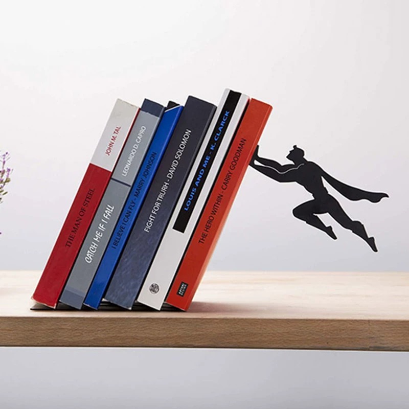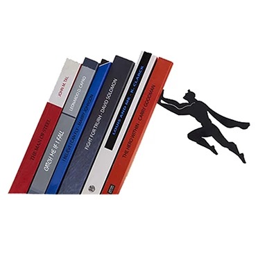 این محصول خلاقانه و ساخت داخل از جنس فلز بوده و دارای رنگ کوره ای ضد زنگ و قابل شست و شو می باشد. علاوه بر نگه داشتن کتابهای شما، جلوه زیبایی نیز به محل کار یا منزل شما می دهد. با این نگهدارنده ابتدا به کتابهاتون نظم میدید و دوم اینکه یه طرح خلاقانه به دکوراسیون منزل یا محل کارتون اضافه میکنید. در این نگهدارنده با مخفی شدن پایه نگهدارنده توسط جلد کتاب و اتصال آدمک قهرمان به وسیله یک آهنربای قوی ،اینطور به نظر میرسد که کتاب ها درحال سقوط هستند اما توسط یک قهرمان داستانی در هوا نگه داشته شده اند! بدنه اصلی و آدمک همگی از جنس فلز و رنگ کوره ای پودری الکترواستاتیک ضد زنگ. محدودیتی در نگه داشتن تعداد کتاب و دفتر و مجله ندارد. قابل استفاده در هر دوطرف جلو و پشت می باشد. مقاومت فلز و وزن مناسب سبب عمر نامحدود این قطعه شده است. براحتی قابل جابه جا شدن است